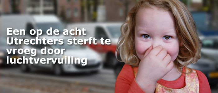Het is slecht gesteld met de luchtkwaliteit in Nederland, en met name in de grote steden zoals Utrecht. Maar liefst een op de acht Nederlanders sterft vroegtijdig door luchtvervuiling. Dat percentage ligt voor Utrecht zelfs hoger. Daarmee staat luchtvervuiling inmiddels in de top 3 van veroorzakers van ziekten en sterfte, samen met overgewicht en roken. Vooral kinderen, ouderen en inwoners van steden zijn extra kwetsbaar.