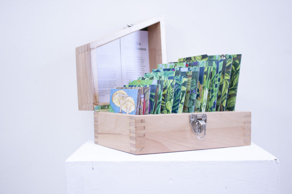 58 hand-getekende kaarten in een stevige houten doos. De toolkit van de Natuur en Milieufederaties Fryslân, Groningen en Drenthe biedt hulp bij de plantkeuze.